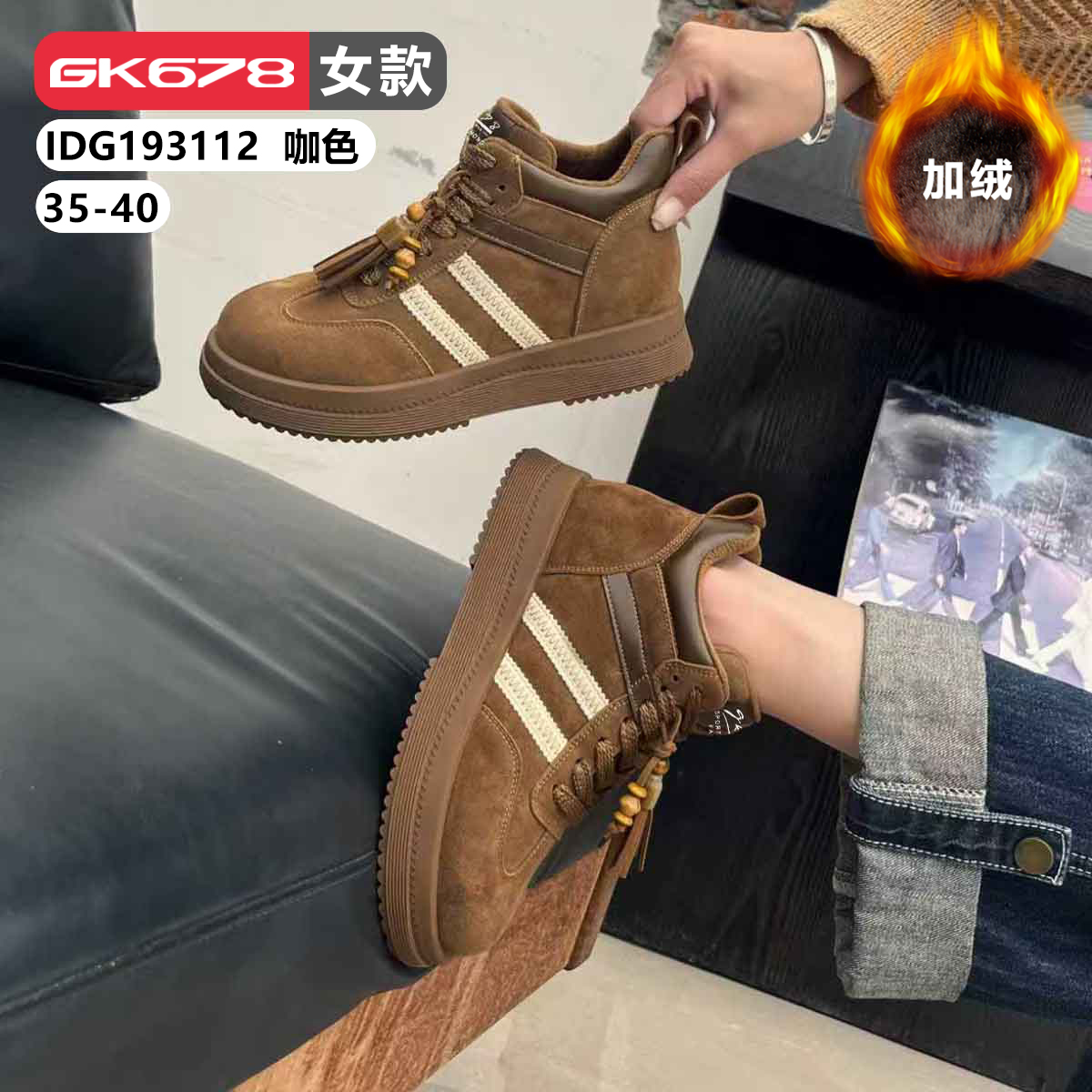 鞋面材质:牛纤绒+真皮